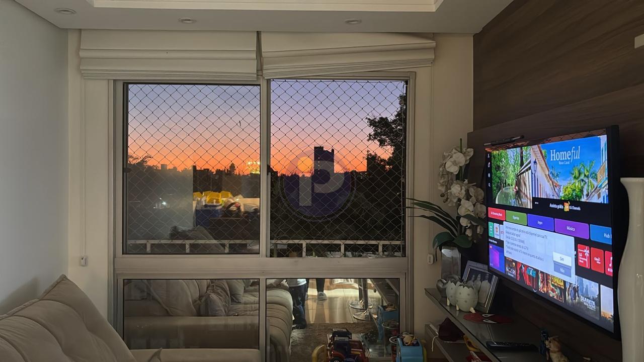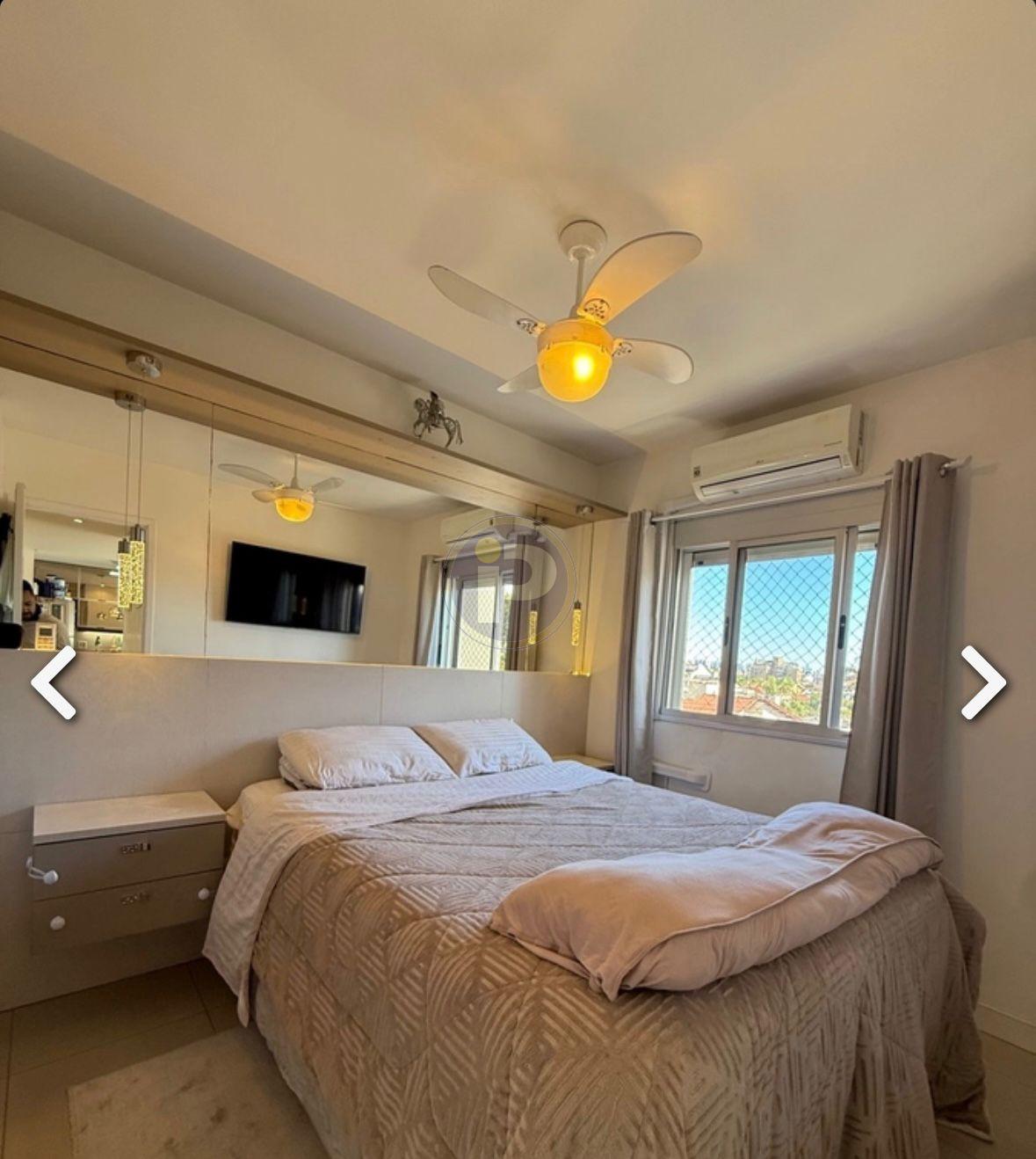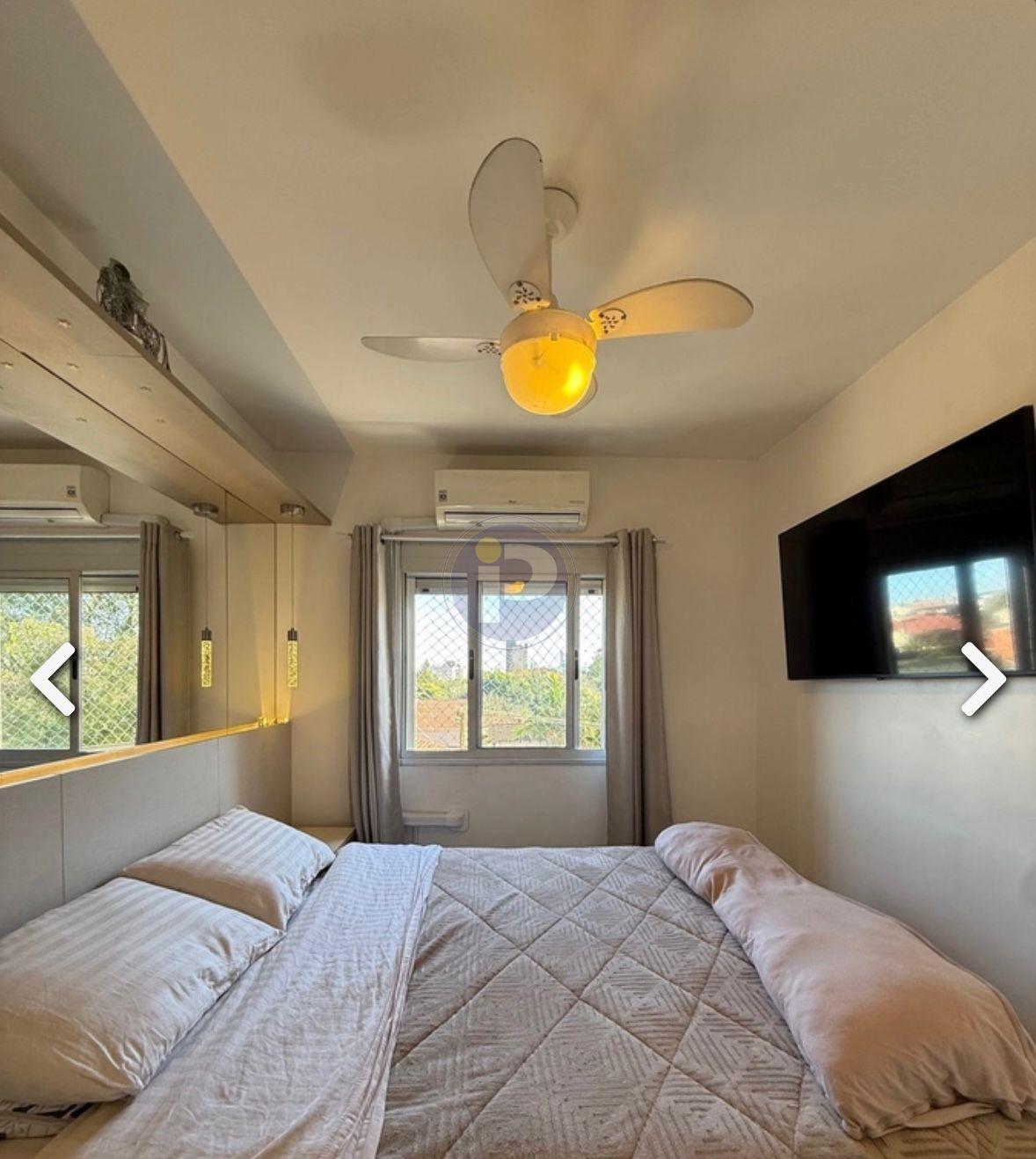 Apartamento semi mobiliado de 2 dormitórios, sendo um suíte com closet, living com 2 ambientes, 1 banheiro social, copa/cozinha, área de serviço com espera para máquinas, 2 ar condicionado de parede instalado(s), 1 vaga de estacionamento. Fica no imóvel móveis fixos, ar condicionado, iluminação, espelhos e móveis dos banheiros.