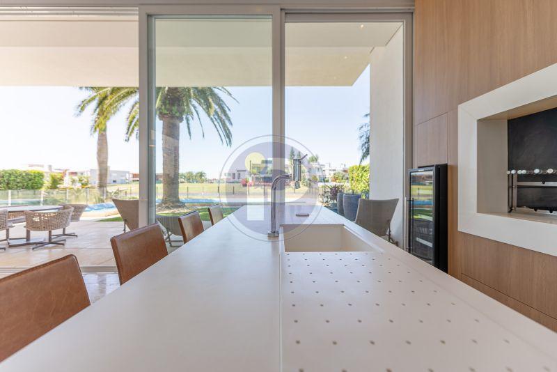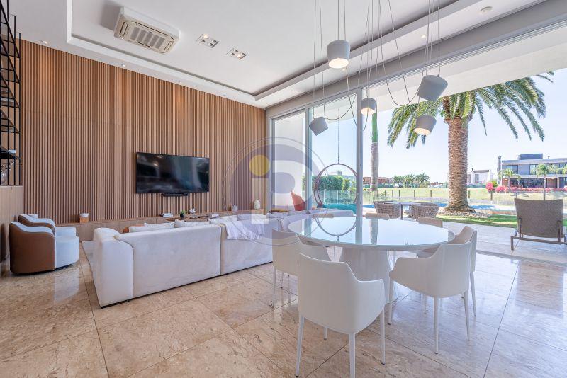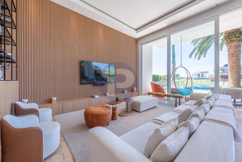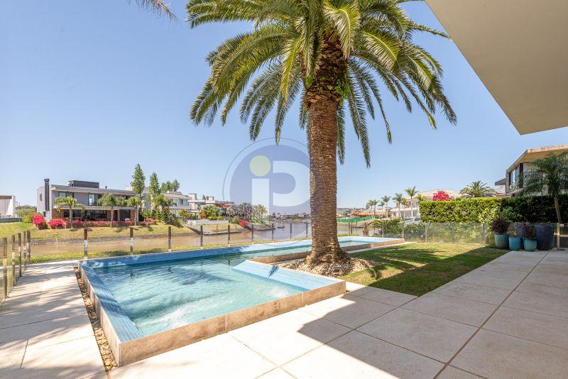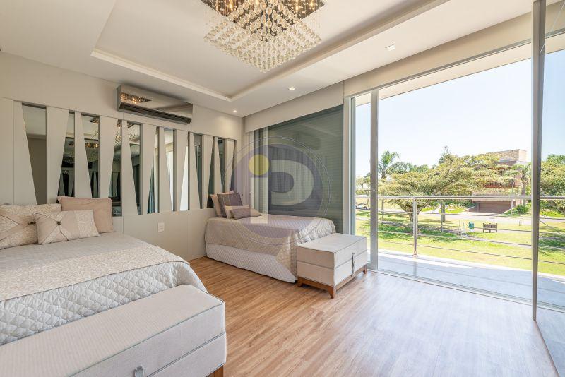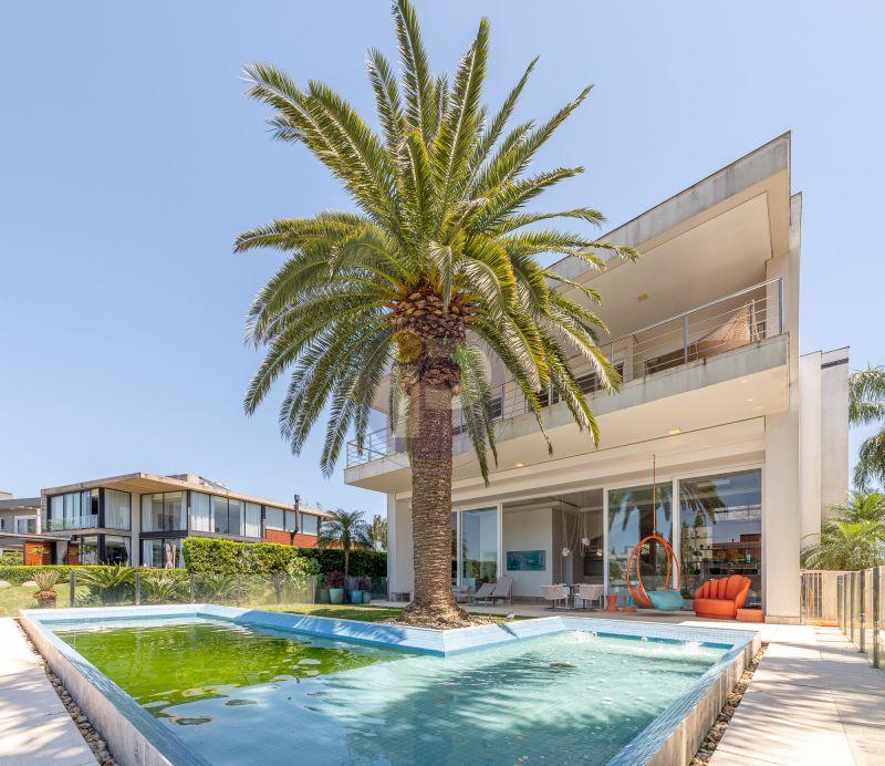 Casa espetacular, uma verdadeira mansão com fantástica vista para o Rio Guaíba e cidade de Porto Alegre, é luxuosamente mobiliada, equipada, climatizada e decorada, composta por 6 suítes (sendo 1 suíte térrea), Living em 2 níveis, espaçoso lavabo duplo, espaço gourmet com churrasqueira, cozinha contígua ao espaço gourmet, área de serviços, área de serviços, banho auxiliar. Lindo jardim com paisagismo e sistema de irrigação. Piscina com borda infinita, com linda vista para o canal e com esperas para bomba de calor elétrico. Área construída de 663m² em terreno com 720m². Automação: Sistema chamado de Neo Control -Automação de cortinas, iluminação, ar condicionado, imagens e sons nos ambientes sociais e máster, pode-se expandir para outros equipamentos conforme necessidade do cliente. Piso térreo: todo andar térreo em travertino. Piso superior: piso vinilico, melhor que se adapta ao sistema de aquecimento e antirruídos. Esquadrias todas automatizadas e com bom desempenho de abre e fecha nos vãosaltos. Iluminação em led. Decoração assinada pela premiada arquiteta Sabrina Barros. Ponta da Figueira Marina é o primeiro e único residencial horizontal de alto padrão com canais navegáveis do Sul do Brasil, em uma área de preservação permanente com 231.000m² e 22.000m de área verde! O Ponta da Figueira oferece altíssimo padrão e total segurança, além de serviços como loja de conveniência, salas de home office, estética, restaurante, marina e serviço pay-per-use, guarita, piscina aquecida, central de monitoramento, port-cochere, salão festas, sala fitness, espaço gourmet, sala de jogos, quadra esportes, brinquedoteca, playground, bicicletário, quiosque, bosque. A 20 minutos do Centro de Porto Alegre e bairro Moinhos de Vento! Proprietário negocia parcelamento direto e receber imóveis como parte de pagamento.